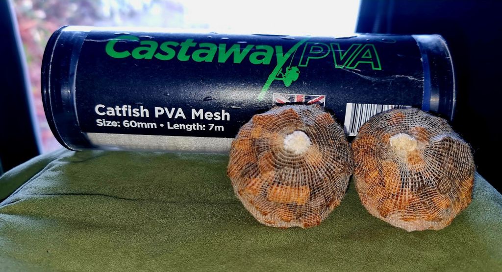 I have a theory about spombing on this water. Around 90% of the carp anglers use bait boats, and with the lake being so shallow, I feel the carp have become accustomed to them and shy away from spombing. With that in mind, I use what I call a “chuck-and-dump” bait boat. It simply flips the bait out of the back—extremely simple and very effective. I tend to use it only at the start of a session to get the freebies out, this would be a mixture of hemp, buckwheat, solubles and a few boillies, then switch to flicking out PVA bags until I feel it’s time to top the swim up again.