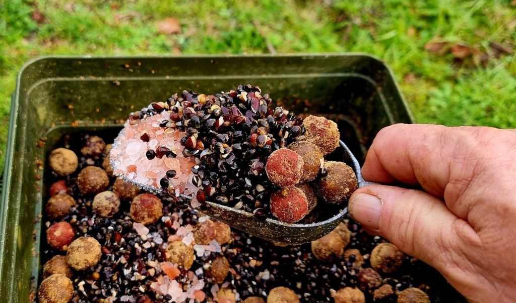 The smaller particles break down quickly, drawing fish in and keeping them grubbing. The boilies then act as the higher-value mouthfuls.