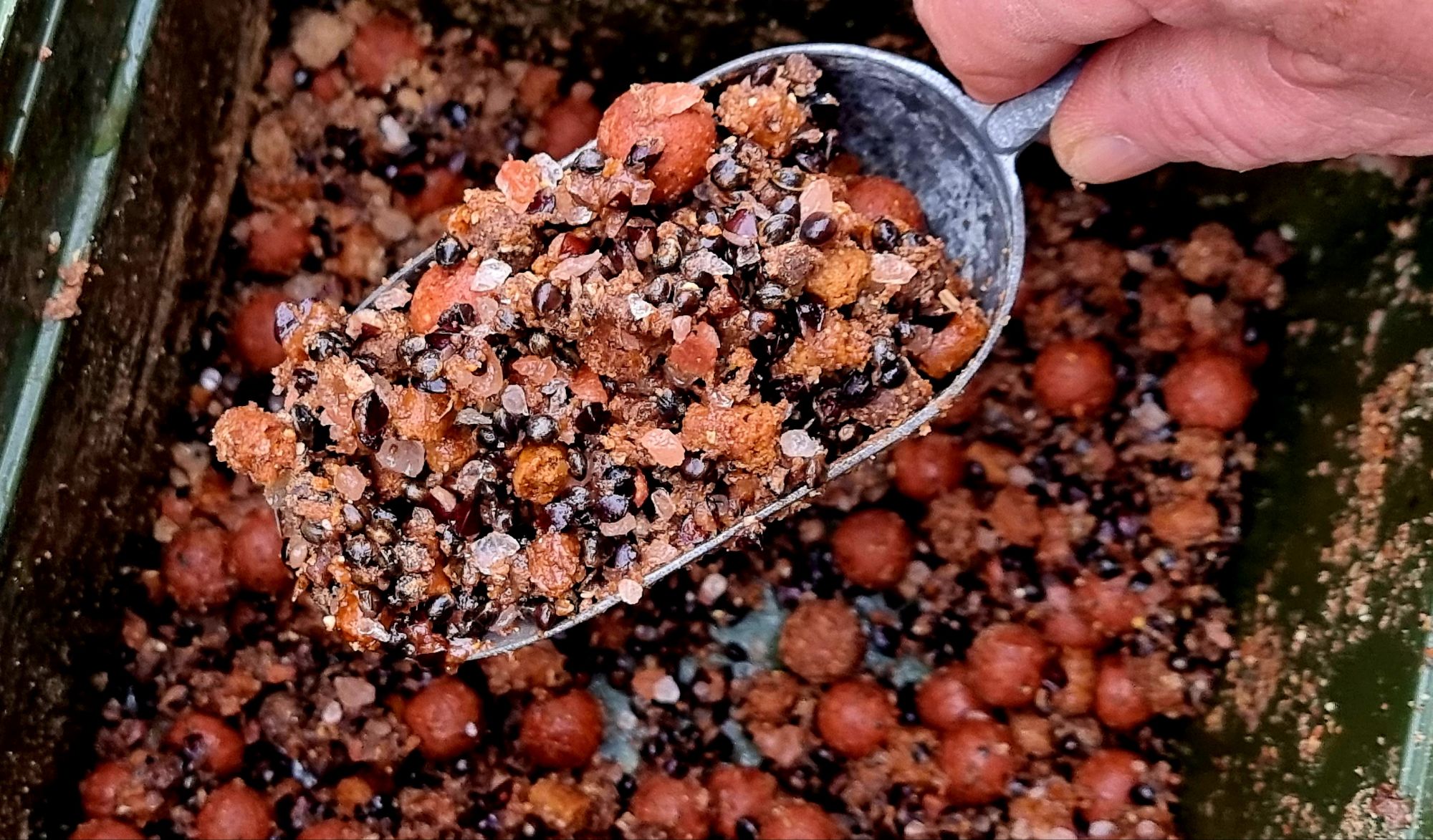 With the spots located, it was time to mix up the bait. In the winter months I like to measure everything out properly. All the ingredients are kept in my Korda Kontainer, then mixed together in the RidgeMonkey 7.5L bucket.