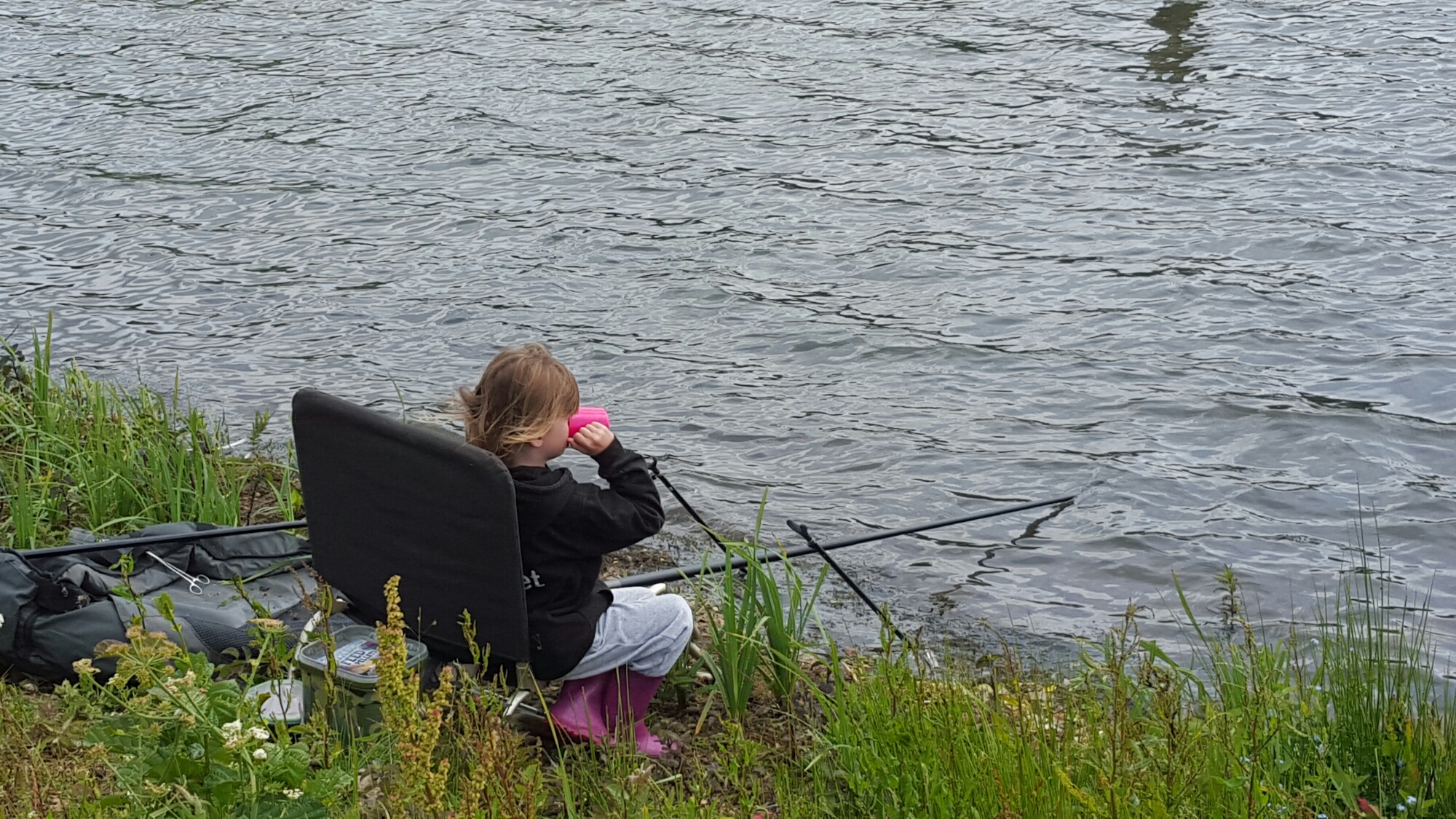 My daughter was happily fishing away after Roach again on a small 8 ft quiver tip rod, all dressed in a monkey suit onesy which I forgot to take a photo of that.