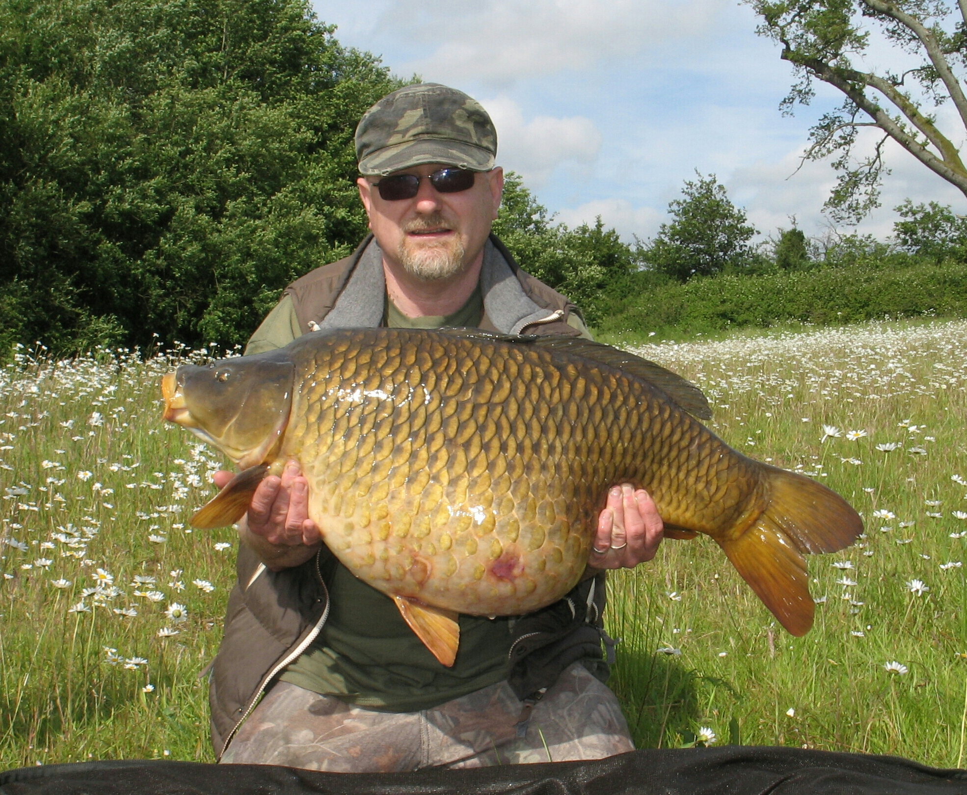 About two hours, the right hand rod was off. It was attached to a very angry carp. It put up an amazing fight and I was not even aware of it’s size. That was until it beach itself in the margin, this was the point when I thought ‘oh, this could be a nice fish’ and also needed to get a wet foot to get the fish in the net. Once I opened the net I thought, ‘wow this could be the 30+ common’ I had been after one for year’s. I (we) placed the fish in the retaining sling and sorted out all the camera bits and pieces and the scales.