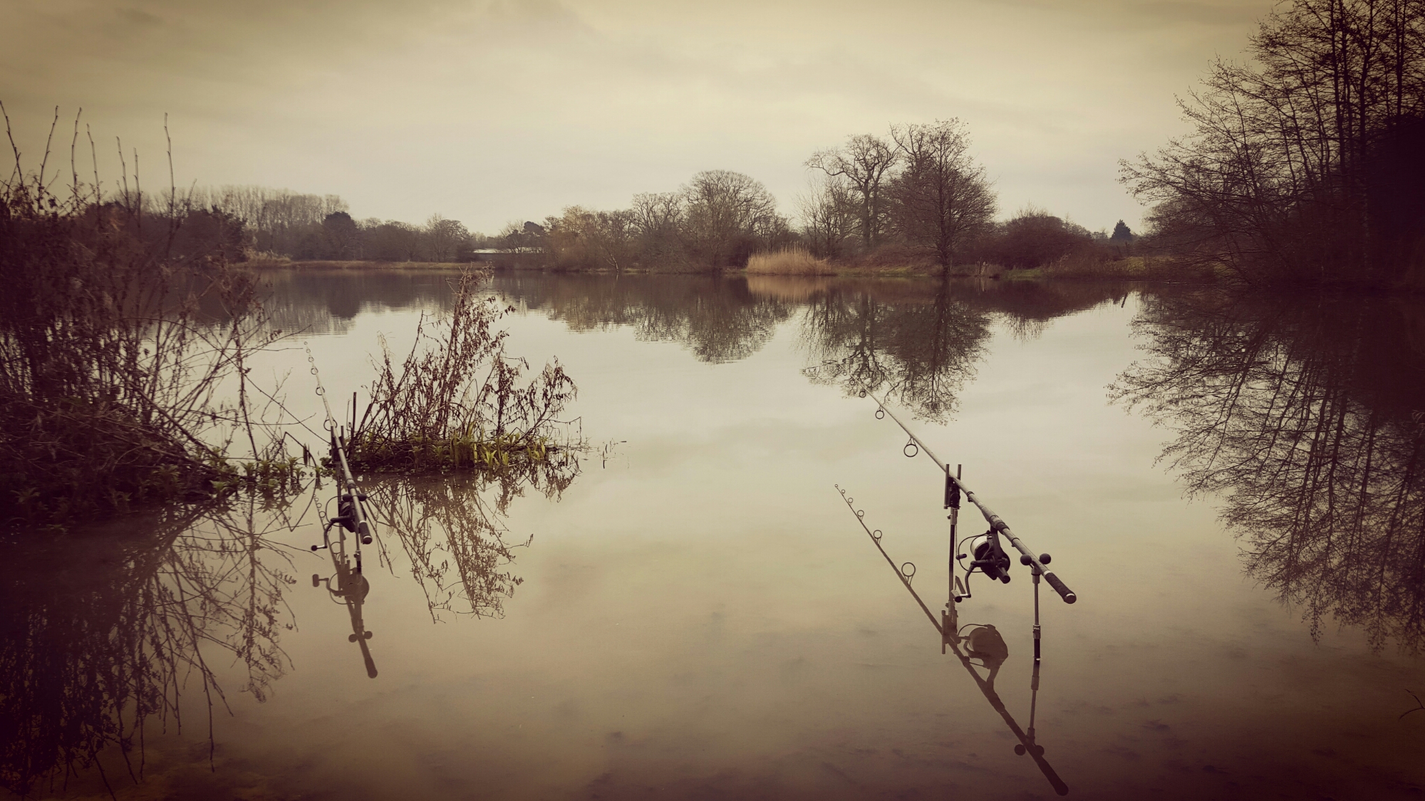 I have set up in the snaggy part of the lake, as the fish will still be tucked up in the area. The only downside is that the swim is underwater and very boggy.