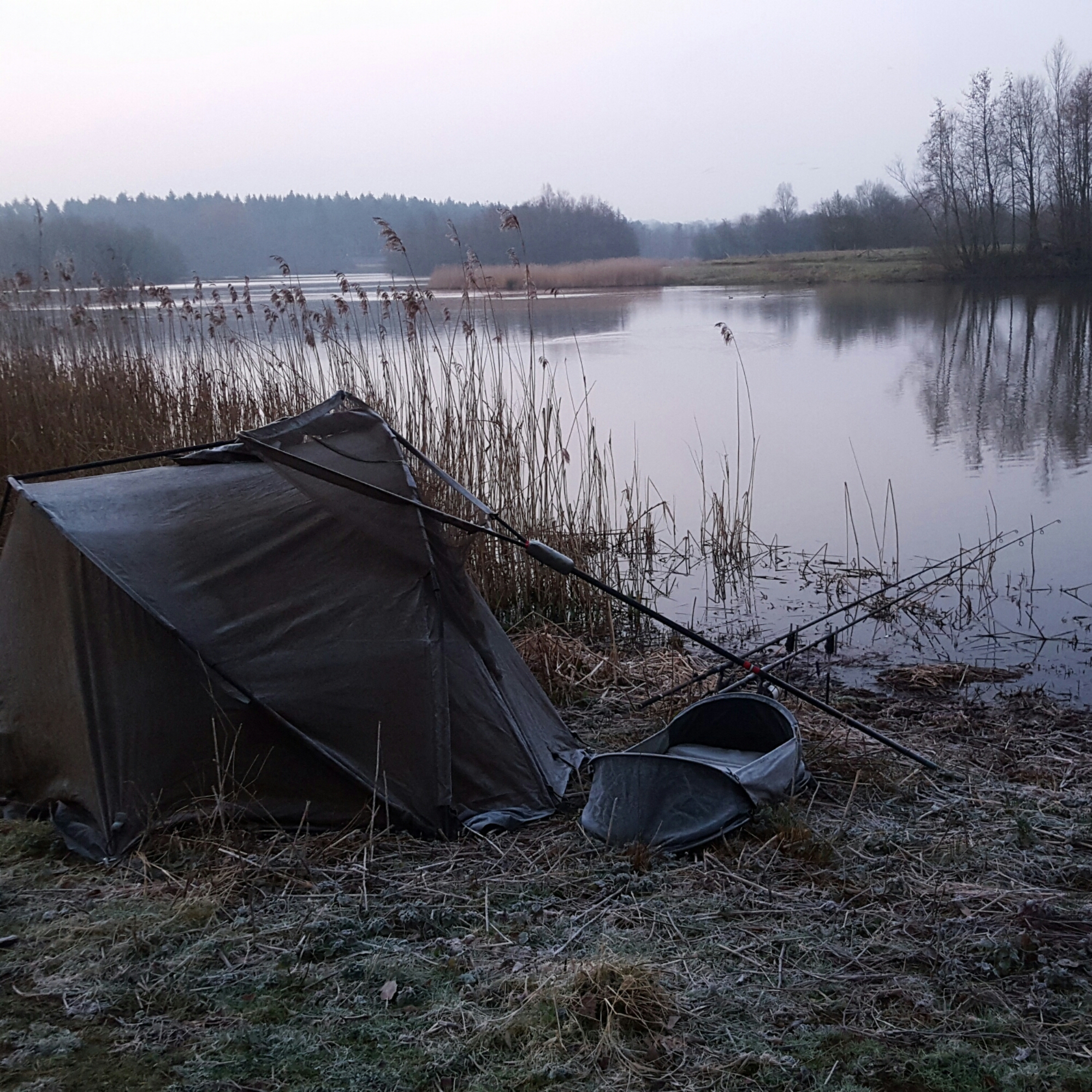 I have picked a small bay area where there is a nice area of overhanging trees and snags, hopefully, the Carp are held up on. There’s just no way of telling, it’s just a feeling I have, as it’s on the north bank and receives a lot of sunshine during day light hours. The down side is that the wind is shifting from North to North West on and off throughout the night and with the night temperature dropping. This may mean the fish don’t come out to play until I am back at home, for the school run tomorrow morning. Mind you, I will be back for the day at around 0930