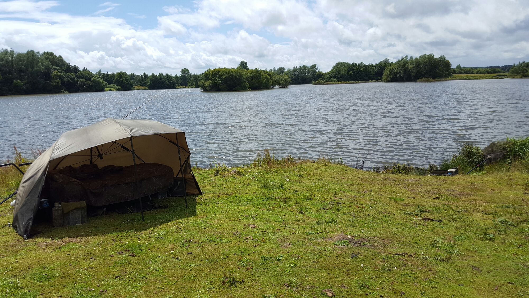 Much to my surprise, the afternoon and evening pasted with out a fish, despite a couple showing themselves near the baited area. I dropped off to sleep watching the lake and feeling confident that a fish would come my way over night. Sure enough at about 4 am the left-hand rod was off and after a lot to mucking around in the margins, I had a lovely Common in the net.