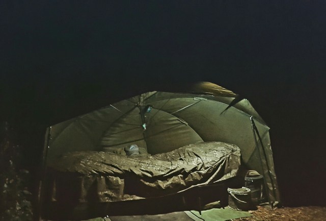 I was in the right area, however the fish had moved into the margins and I was unable to get a bait anywhere near them. The trees along this bank hang out over 20 ft into the lake and yes that’s where the carp were topping all night long. I was hoping that 1 or 2 would venture out, but no they were very happy in their hideaway.