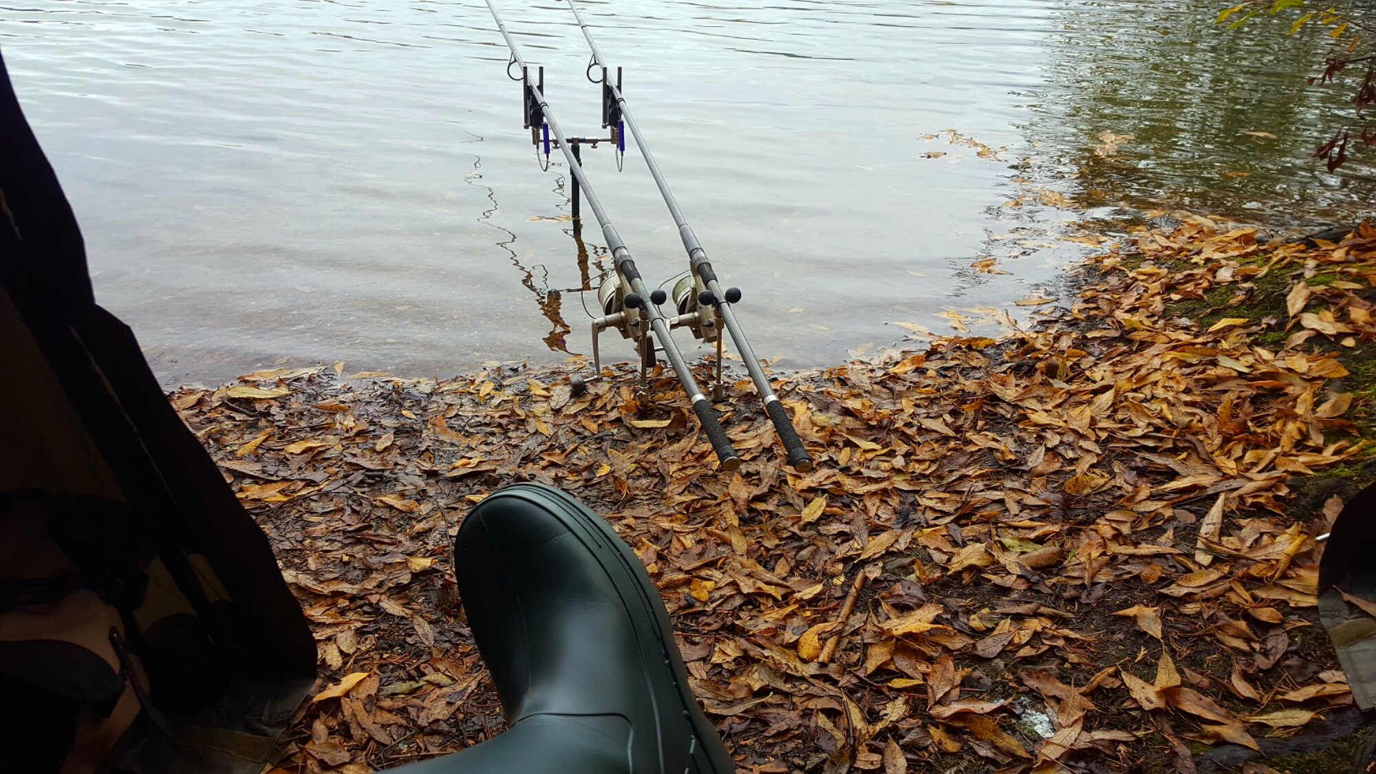 The right hand rod would stay under this bush, with a nice load of Spotted Fin G02 groundbait and chopped Catalyst boilies. The other rod would be pushed out from the margins, as the chance of getting a fish in at night from there was zero (even with my rod butts in the door way), when the storm arrived with the wind and waves!