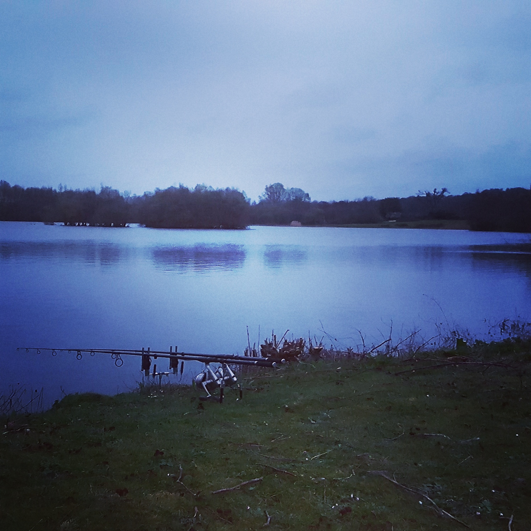 I have mixed up some catalyst groundbait and chopped Catalyst boilies. I have baited up both margins and flicked two pop ups out. I settled back to watch the lake until darkness falls.