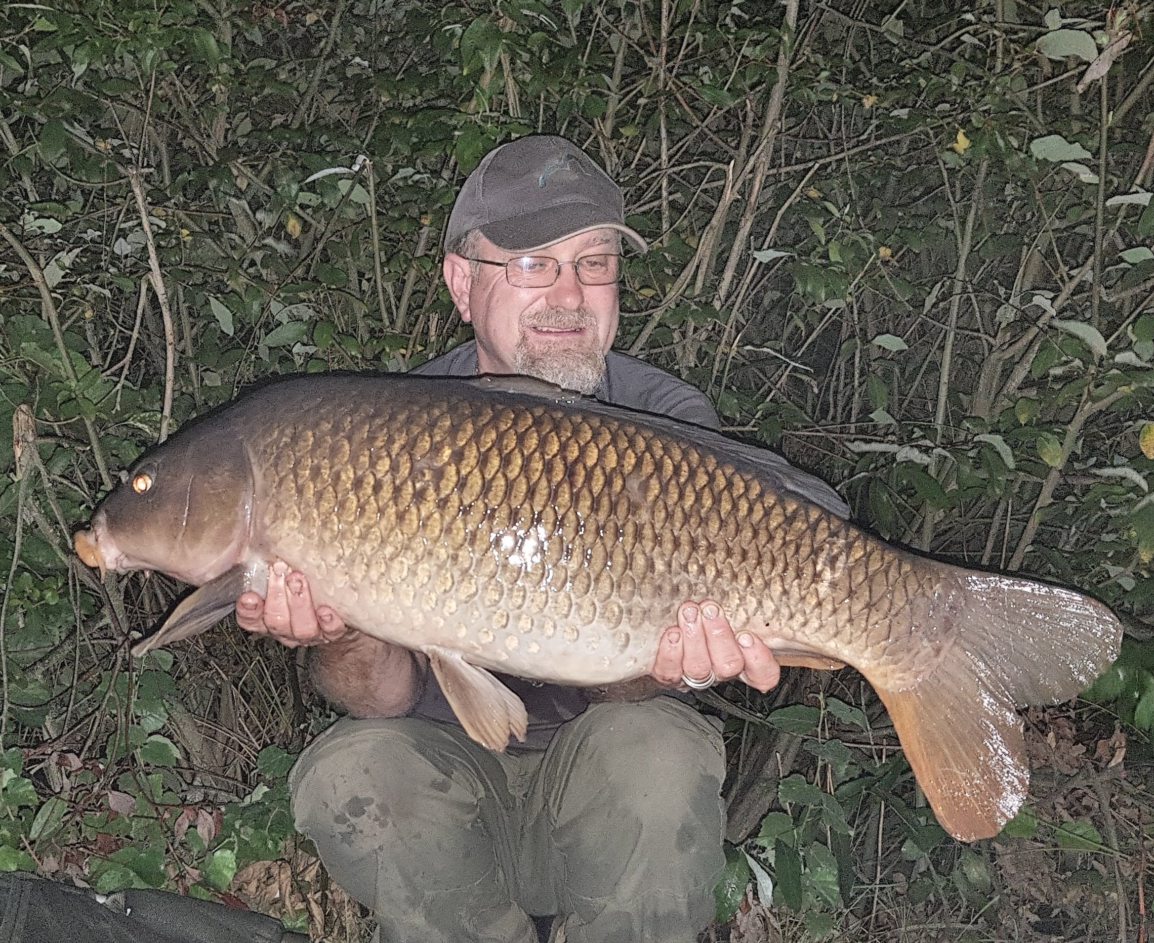 I had to wait until 0330 before the next rod went off and this time it was the right hand one and this fish was determined to go around the left hand side of the point. I was forced to dip the rod under water and hopefully avoid the over hanging tree. With my back lead on the bottom, I just about did. After its’ second lunge off I got the fish in front of me, I clipped the branches of the tree but luckily it came out with no difficulties. It was now safely under the rod tip and trying its best to charge up and down the margins. Not a happy fish but soon in the net again.