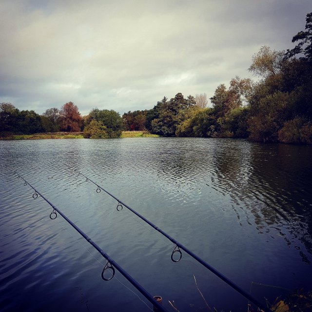 One rod is along the right hand tree line and the other is in open water. This is where I had a fish the other week, no change in tactics on the bait front.