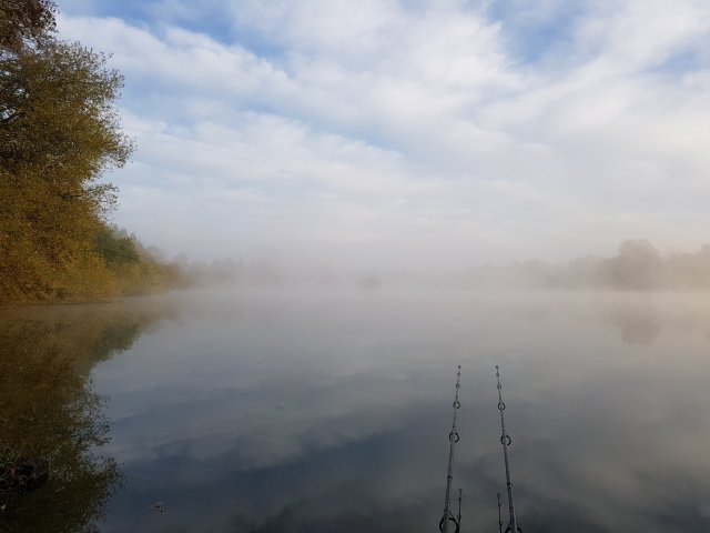 As night fell, the carp started to show more and yes, you guest it all to the right side of the swim and even along the tree line. I was pretty confident until I had a bream about midnight and then a tench at 03.30. The night finished with fog and a strong north wind. I woke up to brilliant sunshine at first light.