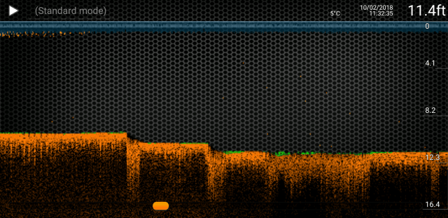 This final screen shot depicts a steady incline from 11ft up to 9.4ft, again is another likely area that fish would patrol along.
