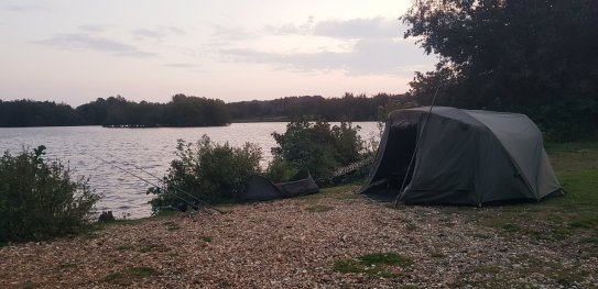 Ian arrived after having a drive around and was happy with my swim selection. We set about getting some bait out into the lake and getting our pitches sorted.