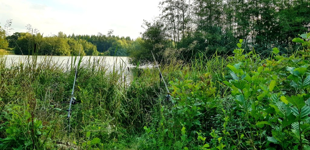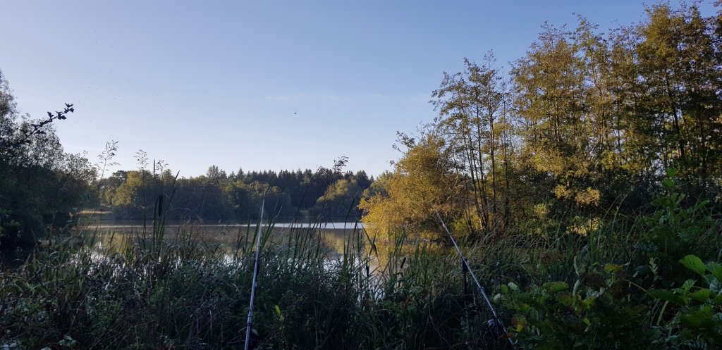 With no action, I redid the rods and adjusted the spots slightly, I also added a few Classic Corn boilies this time. Last night was only pellets and my groundbait mixture, I wanted something more substantial in the swim tonight, I think the small fry may have cleared that up a bit too fast. The conditions are still looking promising, with the odd carp showing in open water beyond the bay, the carp activities are getting more frequent.