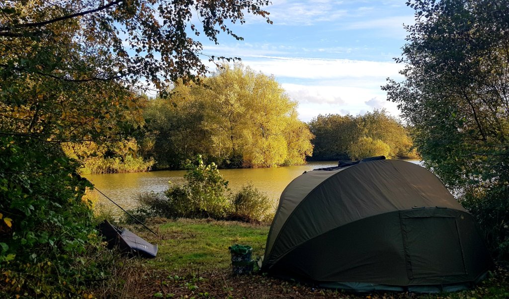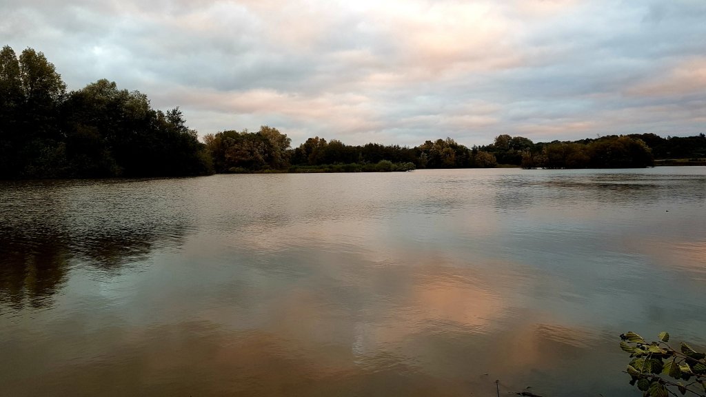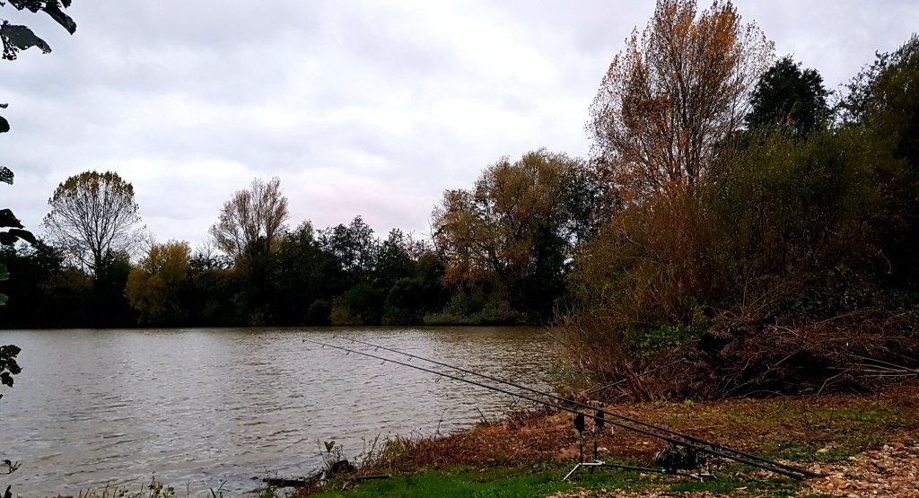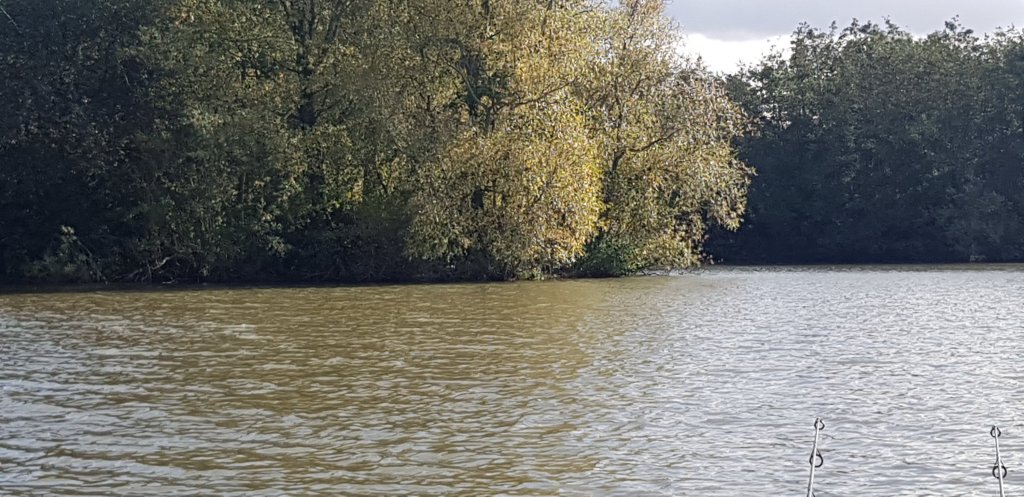 Ian had gone for the middle lake, on a spit that divides it from the main body of water. This gave me lots of options as well. I arrived just before 2 pm and dropped my bucket where I thought I was going to go. However, after a walkabout and a bite to eat, I headed to the end of the spit, also fishing into the middle lake, but there was always the option to fish the main lake behind me if the going wasn’t as straightforward as hoped. This was only the second year of fishing being allowed in October and completely different weather conditions to last year. You just never know. Not seeing any signs of carp is becoming the norm on here, which is no help.