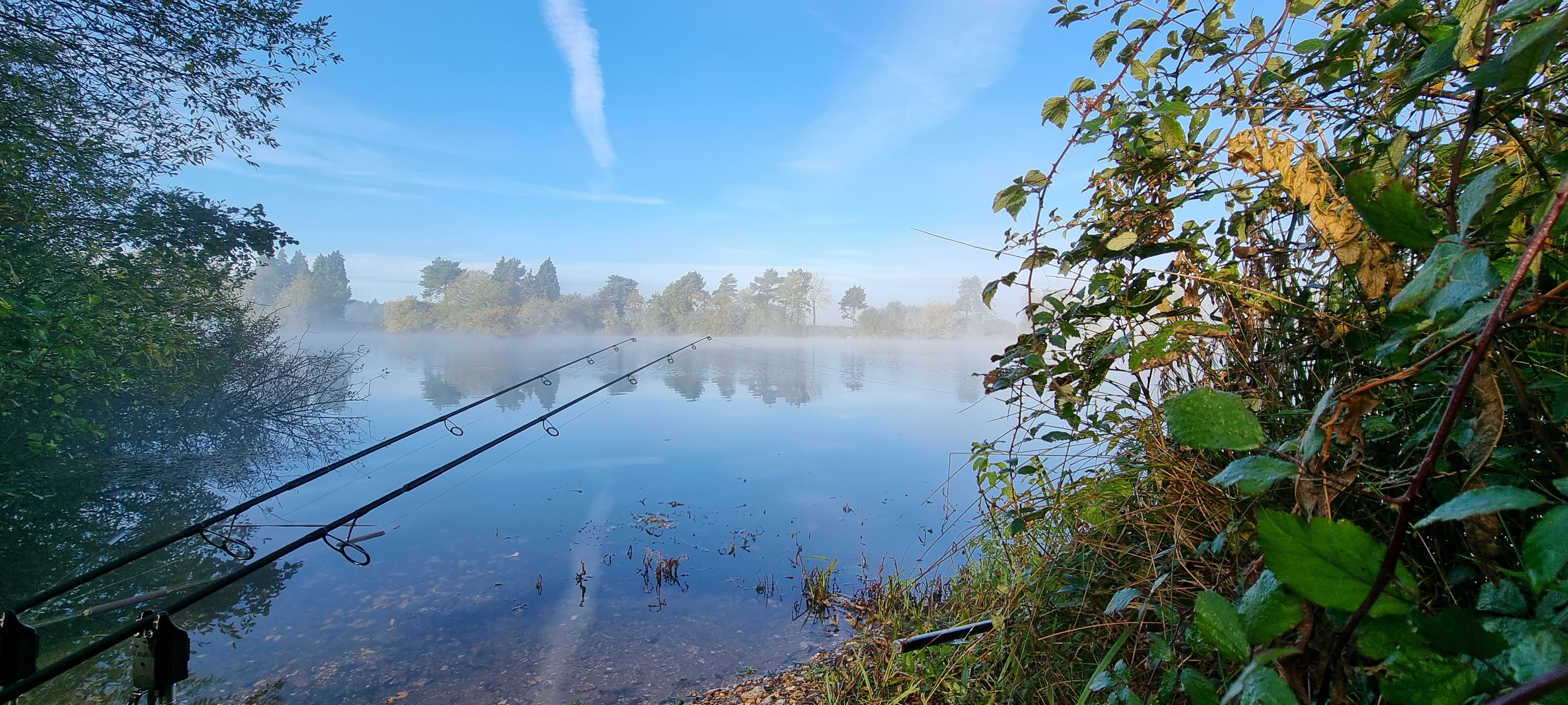 I was up about 4 30 listening out and watching the water for carpy signs. I was also wondering if leaving my baits out had been such a good idea. After hearing a few carp crashing in that direction around midnight, I was sure one of my rods would have rattled off at some point overnight.