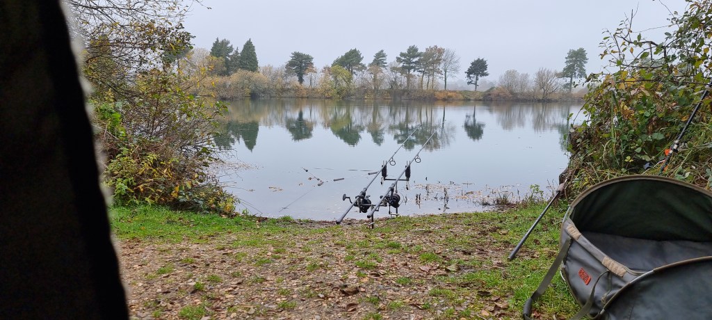 A day angler has set up on the opposite bank to me in one of the days swims and could help push the carp out into more open water – with any luck a bite may occur. I may consider a move of swim later today, but there’s a good chance of an influx of weekend anglers which would work in my favor where I’m currently pitched up.