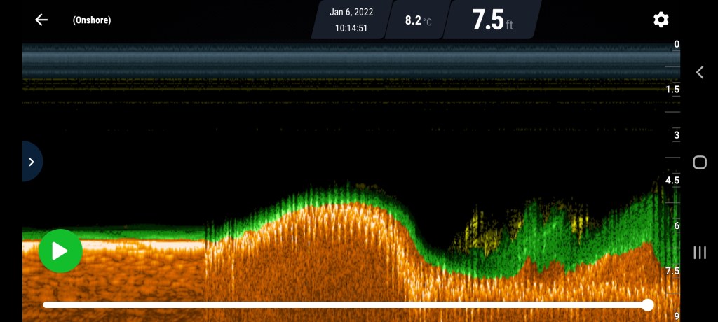 I checked out another spot that I’d fished some years back in this swim, with Deeper, and it was pretty clean.