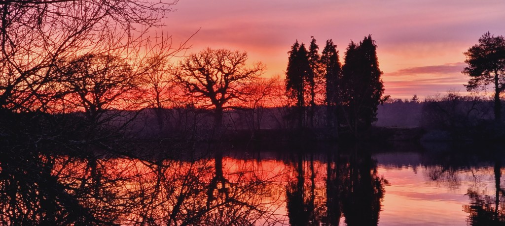 The day passed without a bleep for Ian or me. It was nice and warm in the sunshine, we actually spotted some carp, unfortunately not in our swim. We did have a good look about and started to formulate a plan for the coming half-term week. The wind had now swung around to the south and was all very calm by early evening; the sunset was as spectacular as always.