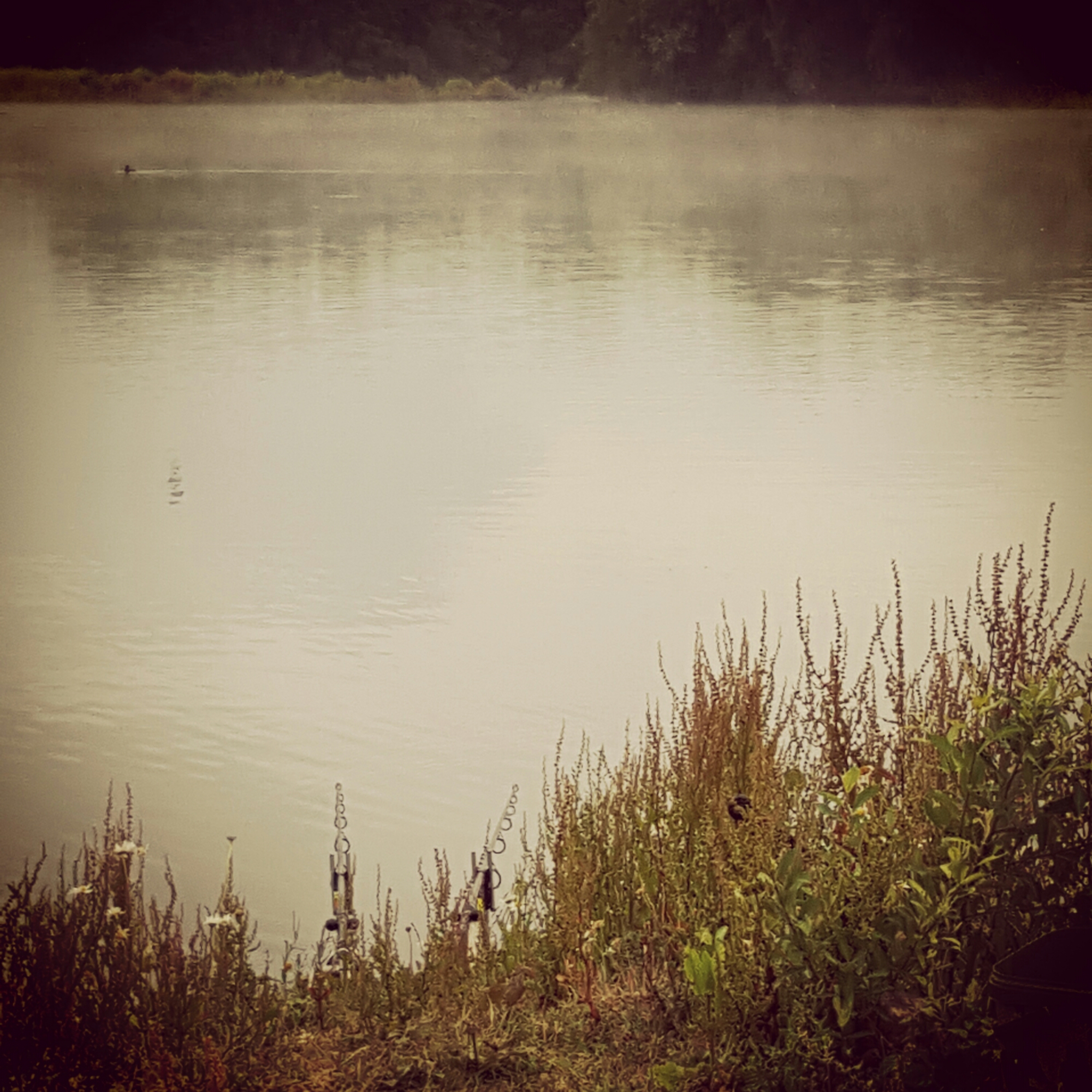 There was a bit of rain early evening, the sun came out for a perfect evening and with night closing in, the mist appeared and the lake looked a perfect carp anglers post card, just stunning.