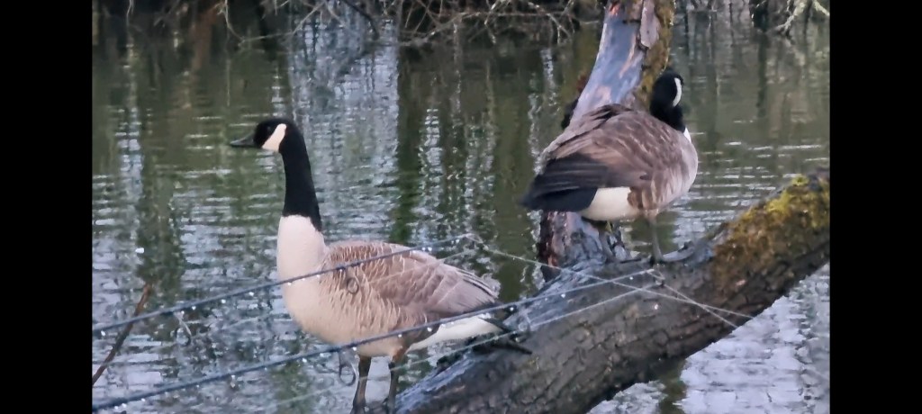 I was up early, thanks to a pair of roosting geese by the tree near Ian.