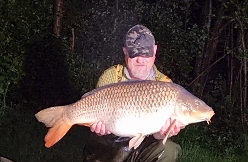 Just before 2 am, the right-hand rod burst into life and I got the waders on. I like to do this first these days, the older I get, the more wobbly I am on my feet and add in a hard fighting Airfield carp trying to kite into the nearest snag (you get the picture!). Don’t laugh, but once trying to put my waders on after I’d picked up the rod, I fell over and the carp got away. I’ve not done it that way around ever since.