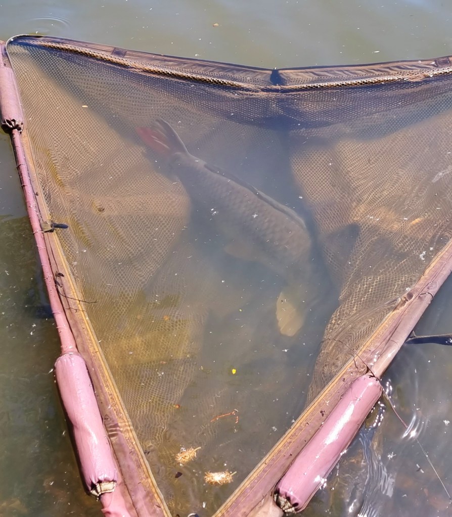 They were no real issues playing the carp into the Nsr50, it pretty much came straight in, apart from a near issue with the other rod when I took the rod over the line and then discovered that I needn’t of bothered. That was sorted, the carp just played around under the rod tip for a long time, making me realize that it wasn’t no 10lber this time.