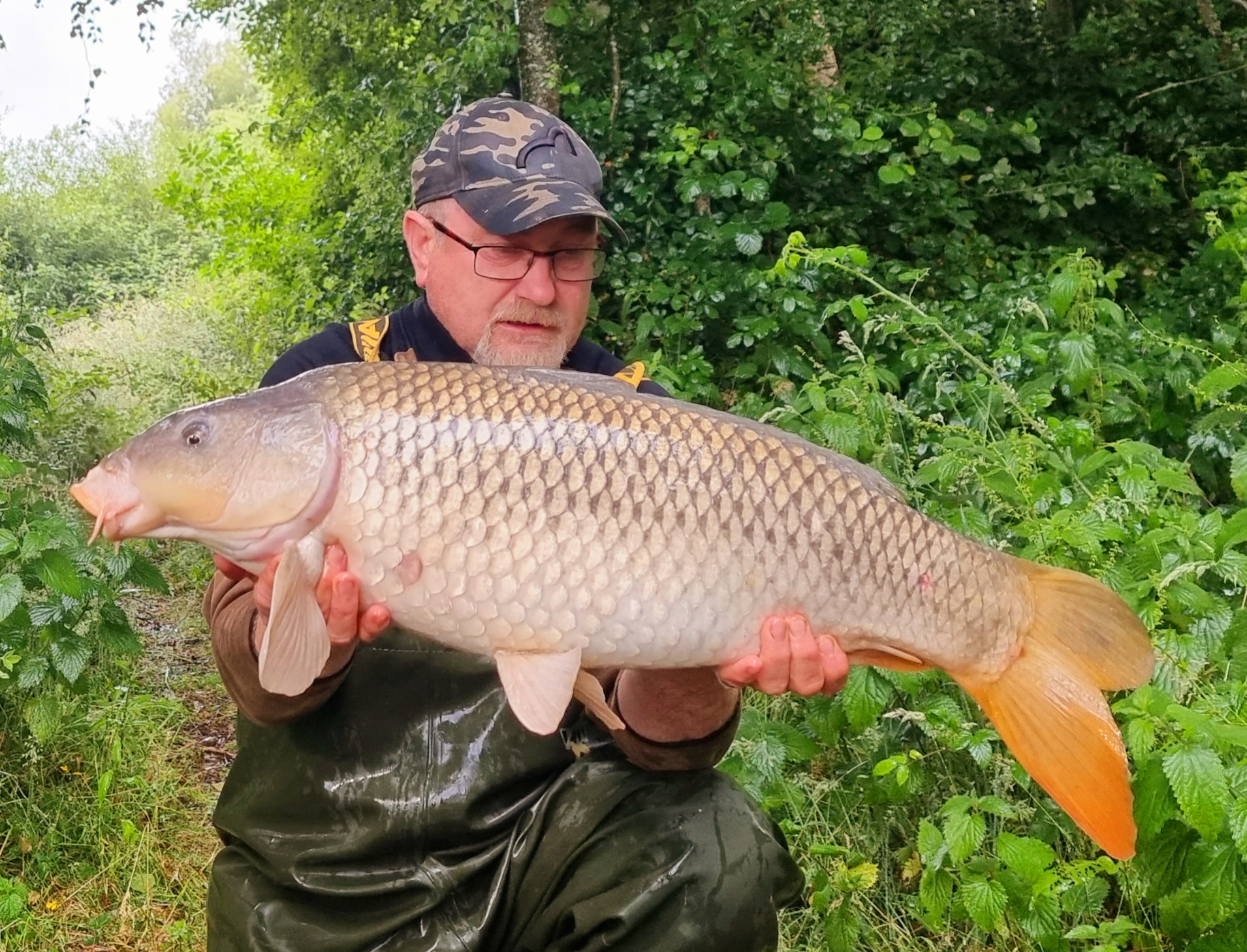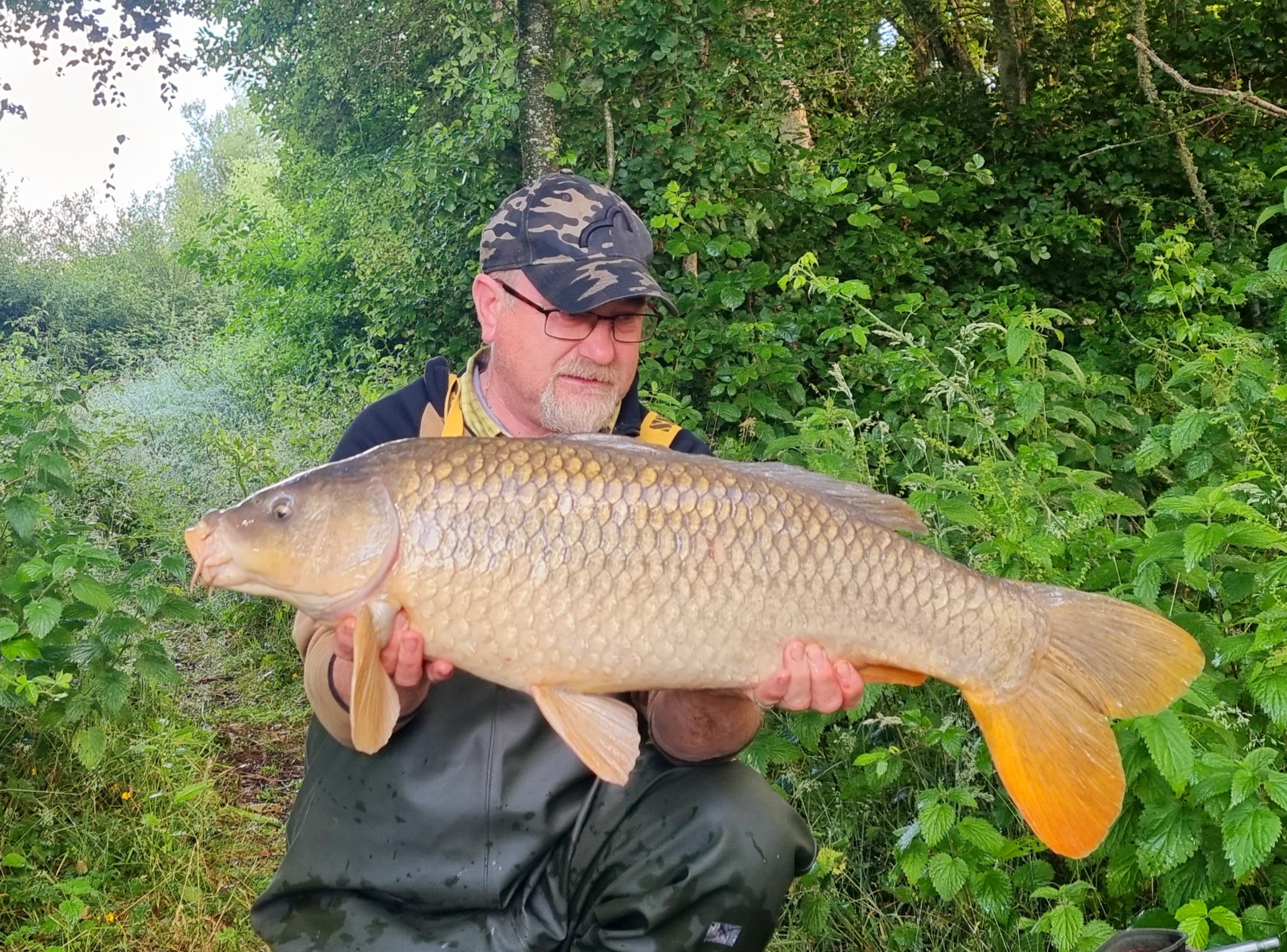 I was up about 0445 for a call of nature and thought I’d better get back in the sack to grab a couple more hours. It’s going to be a busy day for me and quite a late night. Just before 6 am, the right-hand rod was away again, which was nice and a surprise, the lake earlier was flat calm, the sun was coming up over the forest and I felt my time had passed. Just goes to show you how wrong you can be on this water, these carp can surprise you at any time of the day.