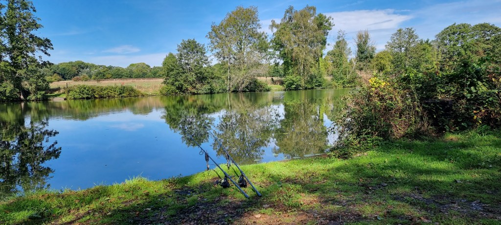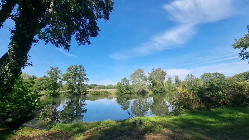 Here will do to start with. There were two-night anglers up by the island and two-day anglers near the car park. This gave me the middle part of the lake, which is an area I quite like and it was a good place to start. It was 12 o’clock by the time the rods were all set up, I’m not sure if I will sit it out here or move along, if someone else heads home.