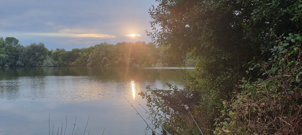 Ian sat in my swim this afternoon, after getting everything sorted, with the exception of casting his rods out. He headed back around 6pm just as the sun was going behind the trees.