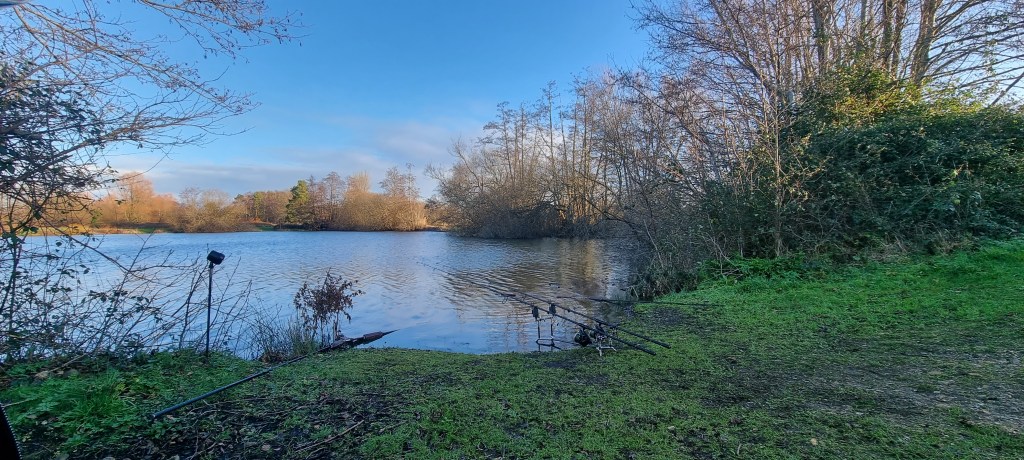 It looked like there was a good chance the rain would have passed over by 11 a.m, this would be nice. I have a guy opposite me, pike fishing along the tree line. This may well push the carp out of hiding at some point.