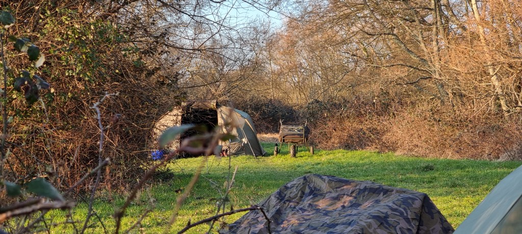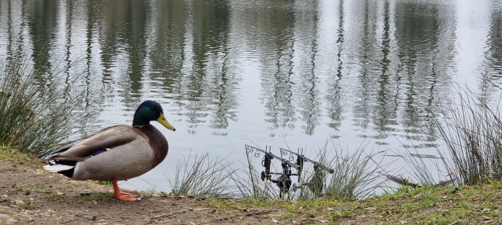 The night was dead silent, and no carp were caught. The ducks came to visit for their morning snack. The wind was a lot lighter and didn’t feel so cold today, unfortunately, no sunshine. I slept in until 0930 as I had been up listening out for carp a couple of times in the night. We can only hope that something has a feed later on today or overnight.
