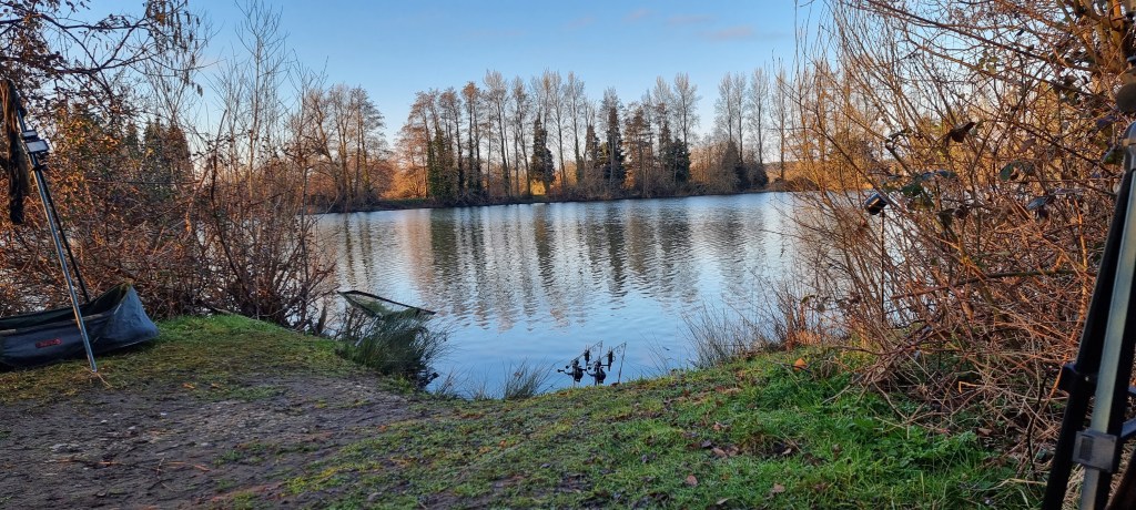 There was no frost that I’m aware of this morning, I was up around 6 a.m. The sun finally started hitting my swims at 0730. There was no more action for me over the dark hours, I’m not sure about Ian at the moment or anyone else. There’s cloud drifting across from the North, so I’m not sure how much sunshine we will get today or how many anglers will arrive, as it’s the Big One Carp show at Farnborough this weekend. I’m hoping that it will keep people away from the lakes.