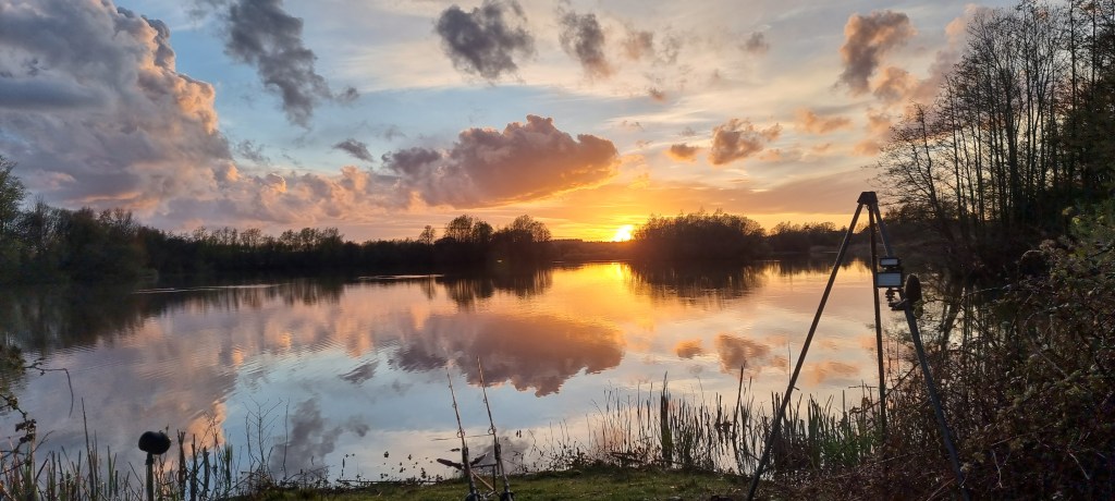 The rain faded away, the wind changed to the North East, and it was forecast to be 4 degrees tonight, very close to being a frost. I reeled in for about an hour and popped over to have a chat with Ian, who was blanking like me – despite seeing carp as well.