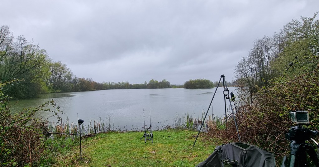 I’ve been watching the lake since I got up, and the only interesting thing to report was a kingfisher on my rods! There may have been one carp who stuck its head out and thought a yukky day.