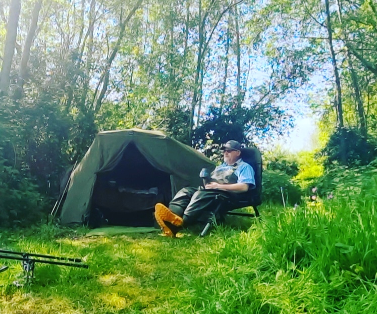 I spent the afternoon after popping over to Ian’s swim for some lunch, sitting in my swim drinking coffee, with my waders on hoping for a bite.