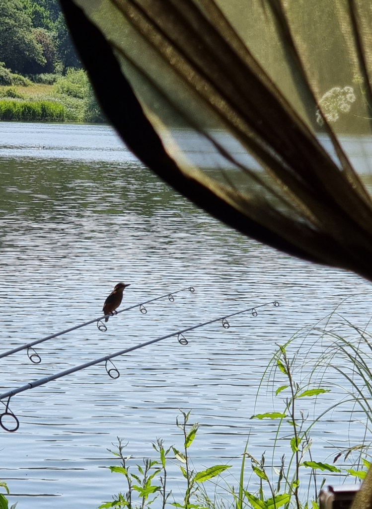 A kingfisher momentarily perched on my rods today. Unfortunately, the light was all wrong at the time.