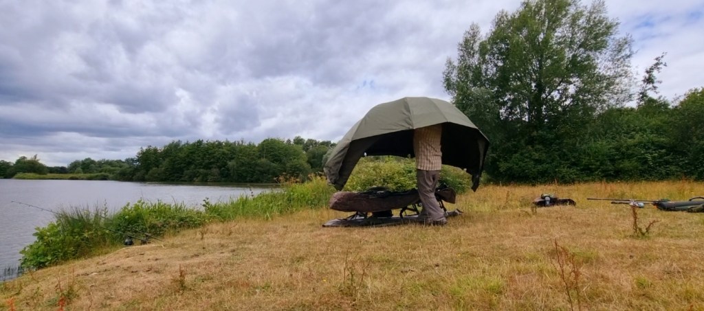 But was soon interrupted by the coming rain and had to quickly get the rest of the kit under the brolly. I was glad I’d set the brolly up, as it turned out to be quite heavy rain.