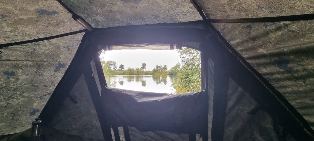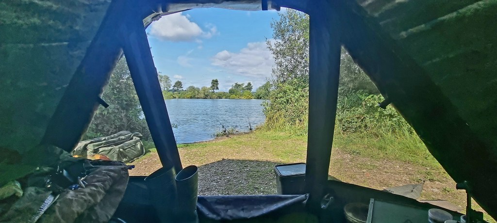 This was my view for most of the morning, but now there’s a brightness in the sky, plus I’ve spotted a couple of carp showing to my right. Unfortunately, out of my water, but not too far off. I’m hoping this is a good sign. The wind is now pretty much doing a 360 over the next 24 hours, this may also bring them out a bit more. I was hoping for more of a blow on the water, like yesterday, currently, that’s faded away.