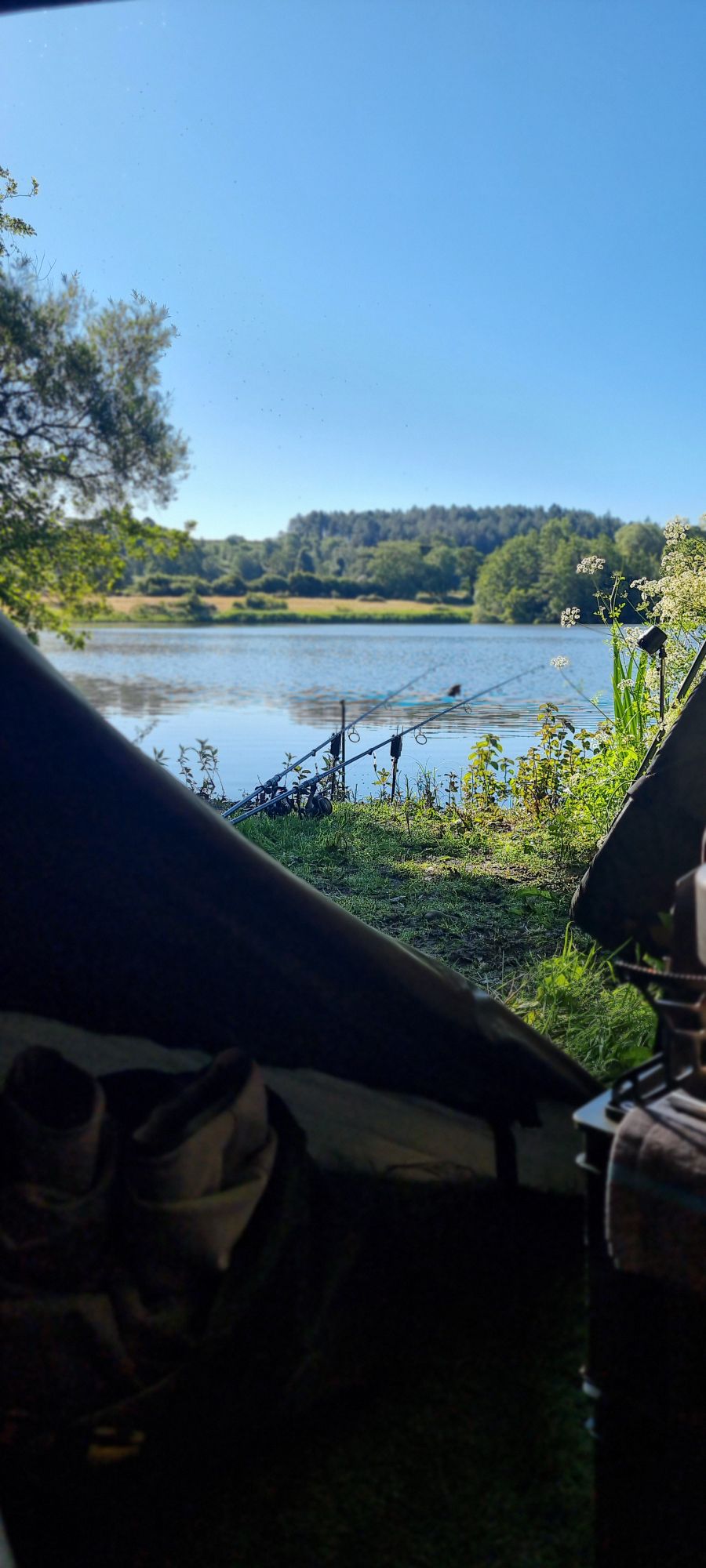 At 03:00, the margin rod burst into life. Waders on, out of the bivvy, pick up the rod, and pull into thin air. Just great. I call these “Spitfire takes” since this was an old airfield once, and they were based here at one point. It could be the ghosts of bygone times. Probably a heavy liner or the hook got bumped out on a boulder before I picked the rod up, but you never know.