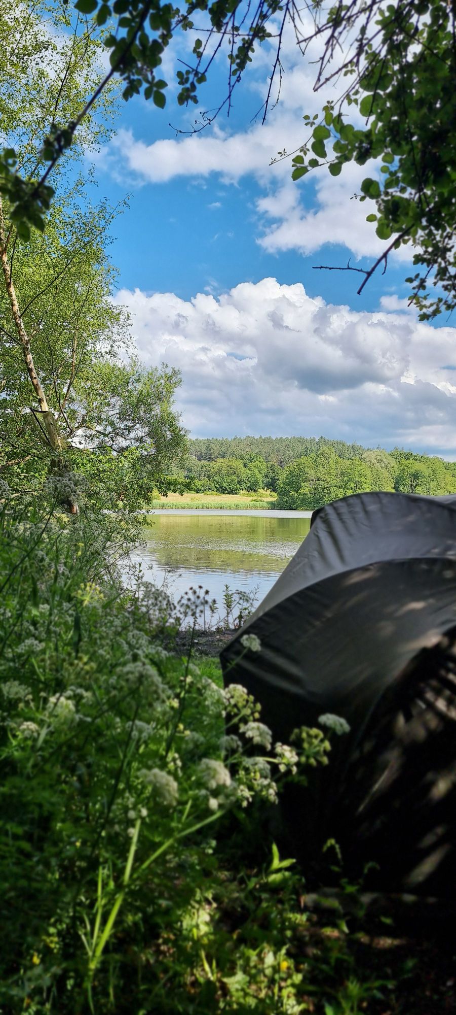 My secret swim looked great, and a couple of carp cruised by in the margins. It seemed like the right time to try it again. I checked the weather and saw that I would be on the back of the wind 50% of the time, as it was coming from either the north or northeast. Though the wind wasn’t favourable, a couple of carp topped about 13/15 wraps out. I decided to give it a go. At least I would be in the shade 50% of the day. I could have chosen the same swim as last week, but my plan was to fish the margins here before the water levels dropped too much. With that, my swim choice was sorted, and I started organizing my kit.