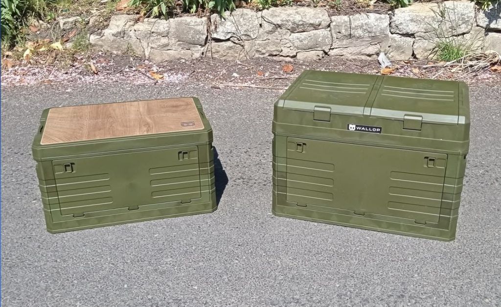 Wallop Tough Boxes When I first saw an advert for the Wallop Tough Boxxes, I thought they looked right up my street, but without seeing them I was a little unsure how strong and robust they would be. Having now taken delivery of both the Cook Boxx and the Tackle Boxx, I can confirm my concerns were totally without foundation. Both Boxxes are even better than I hoped they would be and not at all heavy! The Cook Boxx measures 49cm x 32cm x 26cm and boasts a hard wearing wooden top and a hinged front opening and, carry handles…I went the extra yard and also invested in the custom made Cordura Cool insert – a brilliant addition, that will undoubtedly prove invaluable for my overseas trips. The Tackle Boxx is slightly larger at 55cm x 36cm x 30cm and the lid incorporates two hinged lids that house generous storage compartments. In common the Cook Boxx, a front opening accesses the main storage section of the Boxx. I am undecided yet, but I suspect the Tackle Boxx might end up living in the van. Check them out at http://www.wallop.org.uk