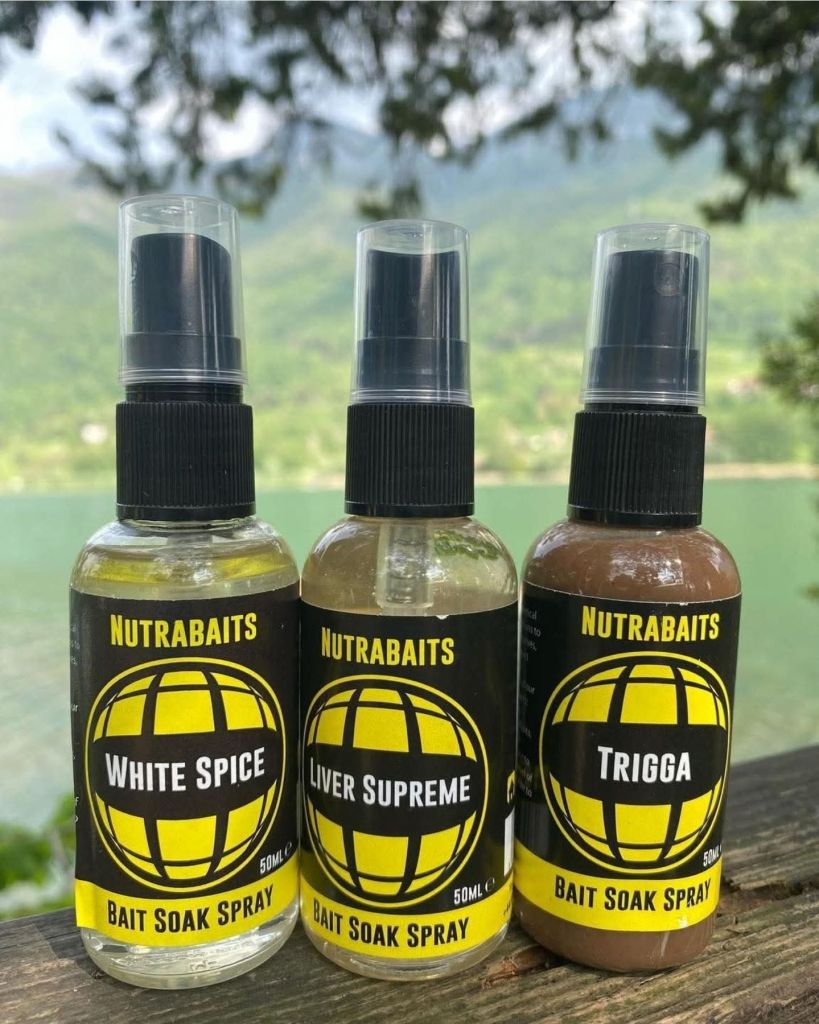 🎣 The fantastic Bait Soak Spray Nutrabaits are the ideal choice for those who want to give their lures an extra gear! These attractive, flavored sprays, perfect on pop ups, corn, boilies or flour, release highly soluble attractors that make them extremely effective in fast fishing and even cold water. ❄️