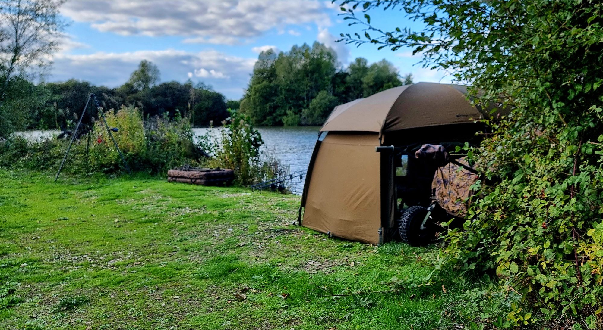 I arrived around lunchtime and wasted no time hauling my gear into position. First job was to get the Frontier bivvy up—rain was on the cards later, and I didn’t fancy setting up in a downpour. With base camp secure, I turned my attention to the water.
