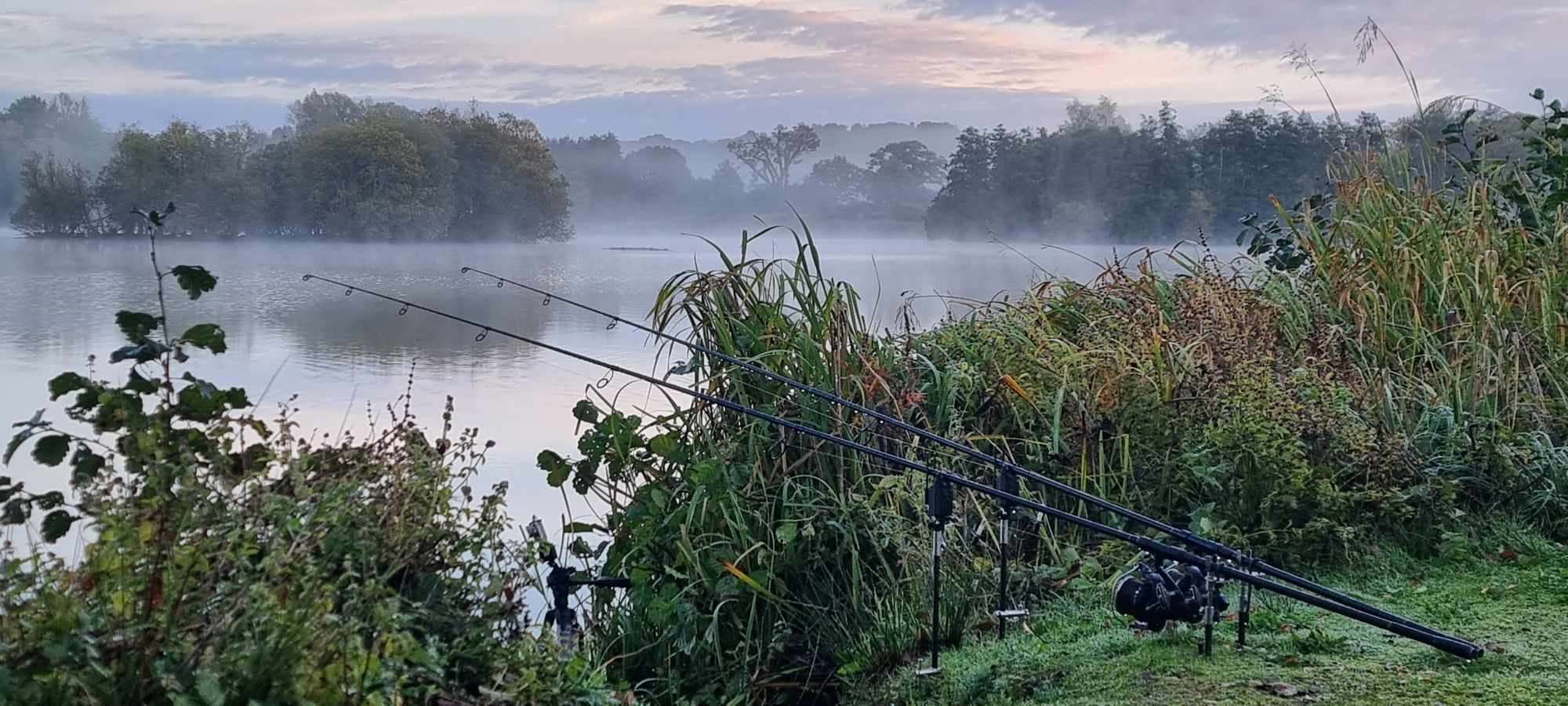 I woke to a misty morning. By 09:00 hrs, the sun broke through, lighting up the far-bank trees and drying the bivvy fast. I was pretty sure that was my cue to wrap up — a heavy band of rain was due overnight, and the carp here don’t seem to like it. I reckon the shallow water and noise of the rain just put them off.