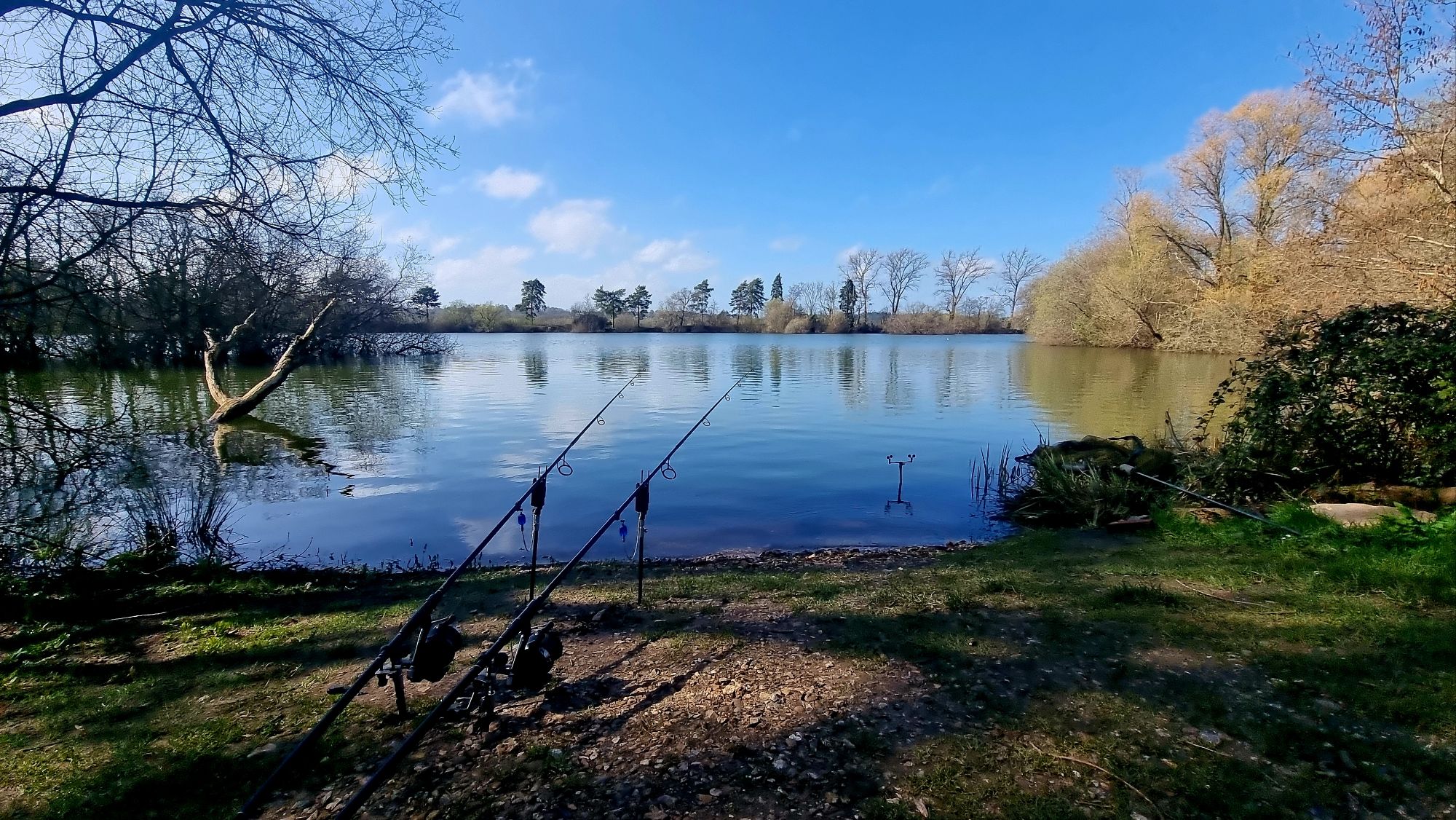 By midday the following day, it was time to freshen things up. Both rods were recast, the swim topped up, and I took a walk around the lake. By 12:30, the sun had finally broken through—perfect timing, especially with an eye on that margin spot.