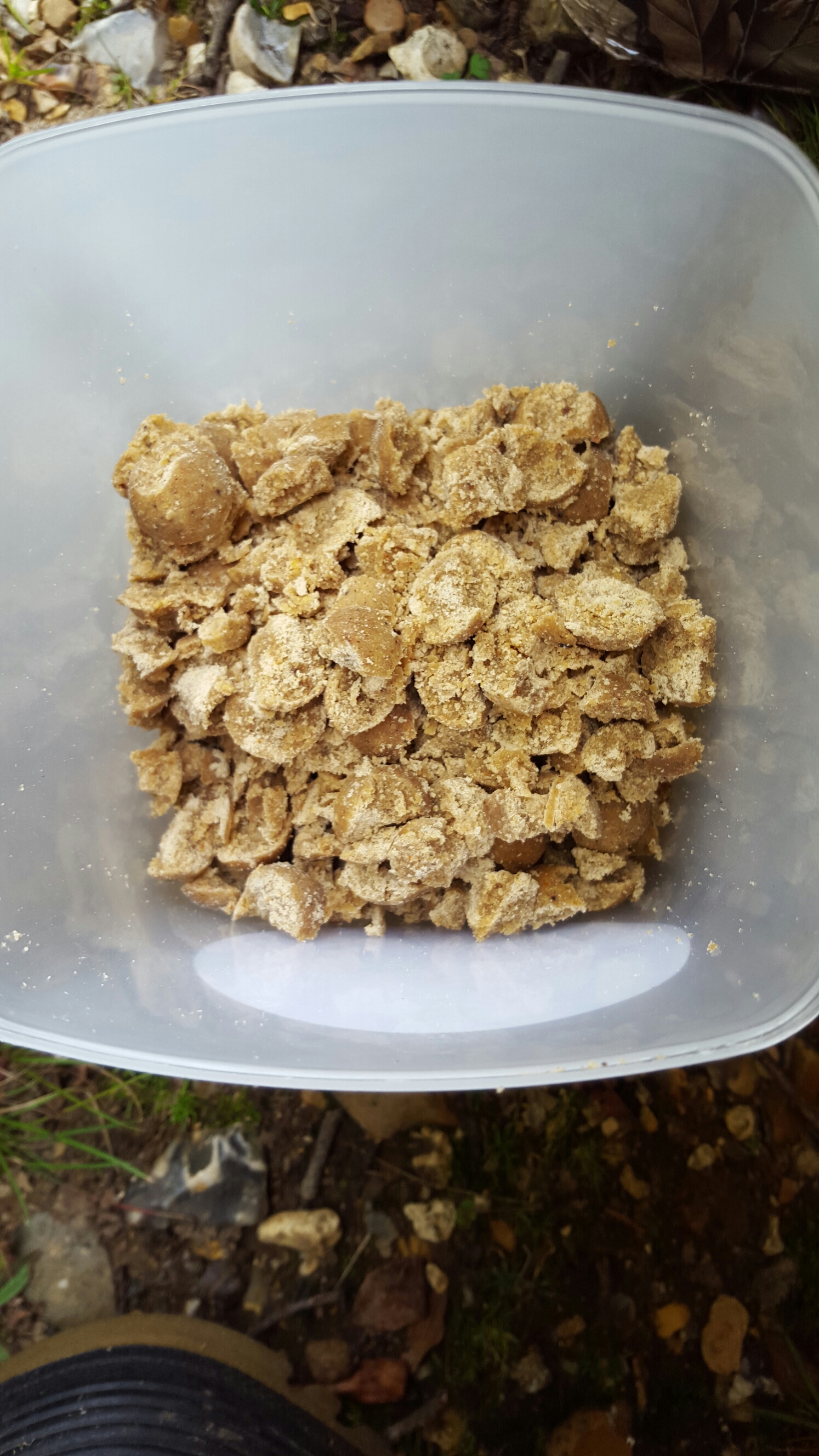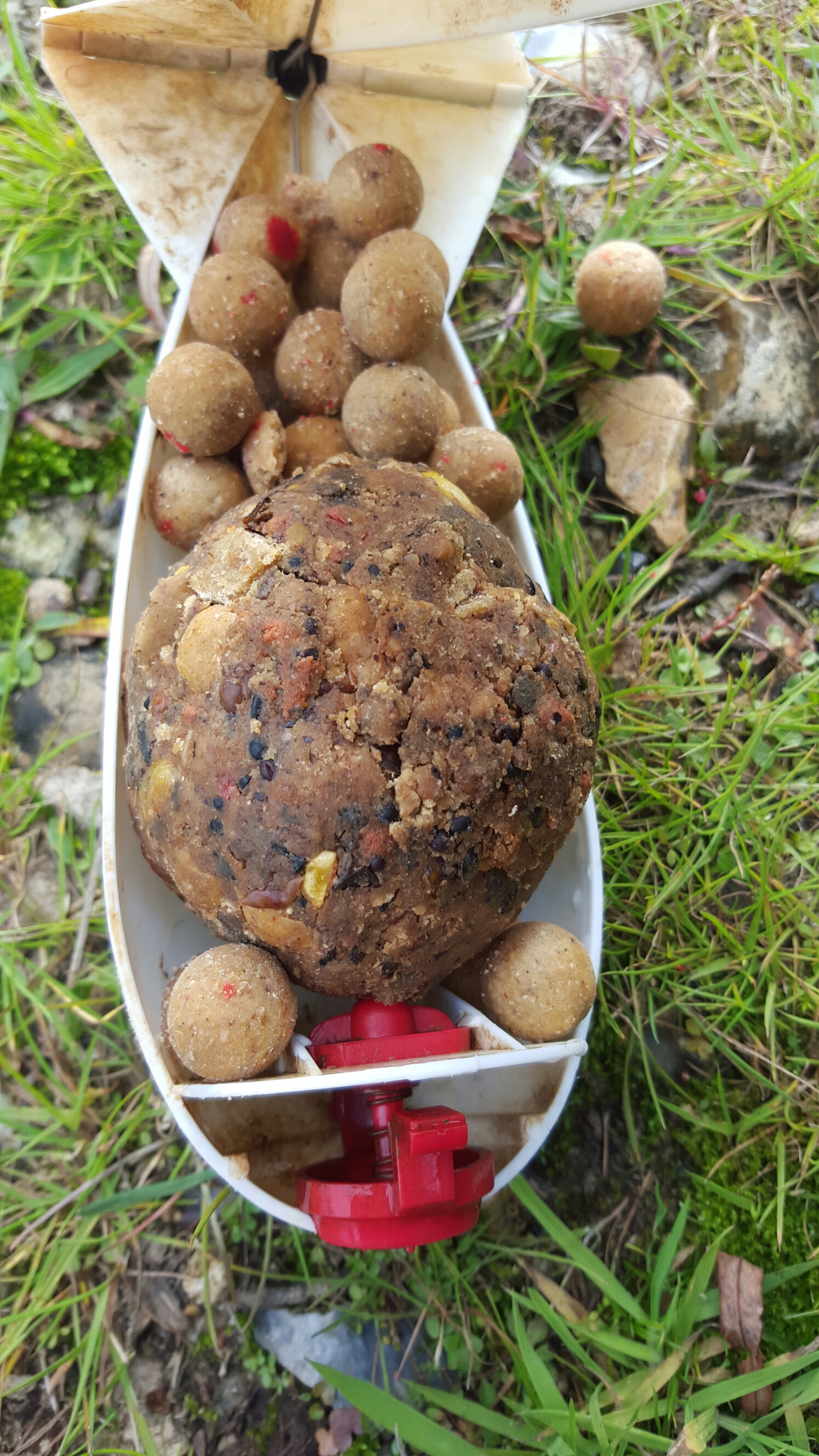 The ground bait was a mix of Bait-tech Poloni ground bait and the big carp method mix.