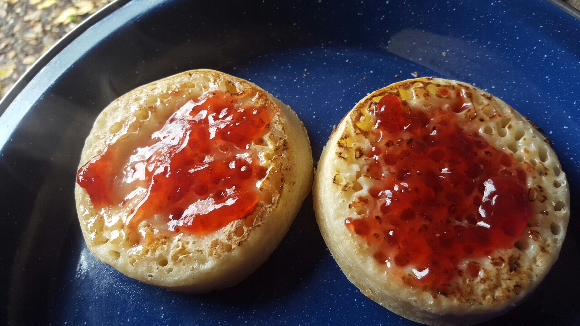 The wind was picking up nicely and there is a good chance of some sunshine. So I am feeling very confident. Time for crumpet and jam on the ridgemonkey.