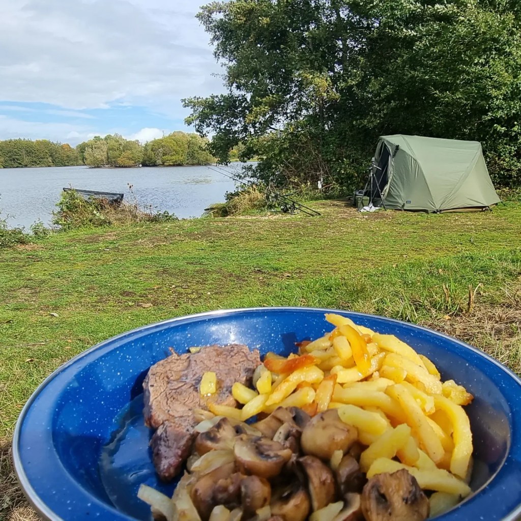 As this was possibly our last session for the year on here, plus Ian only fishes day’s over the winter months. So, Ian had sorted out some nice steak, I had brought the Weber and mushrooms, onions, and chips, so we could have a cracking lunch.