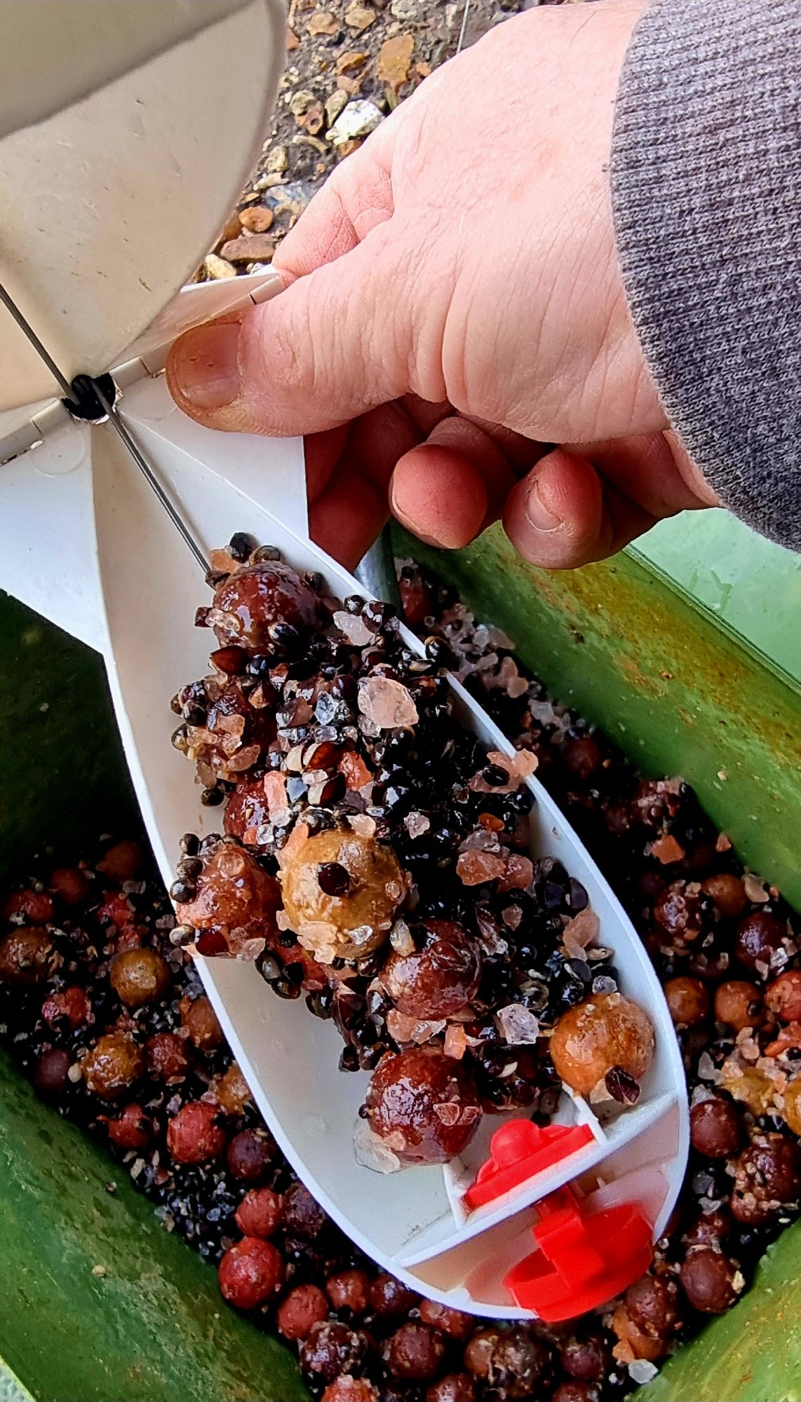 Once I’d located the spot, I spombed out around 3 kilos of Nutrabaits boilies and solubles, mixed with Jurassic Particles hemp and buckwheat. For the rods, I opted for Castaway PVA solid slow-melt bags packed with pellets soaked in hemp oil, finished off with a white Blank Saver hookbait.
