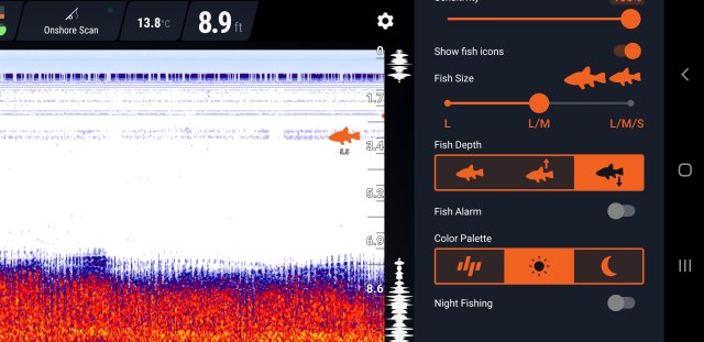 - With the Fish Depth icon you can switch between depth from the bottom or depth from the surface when you spot a fish. This is a personal preference, but an extremely handy function.